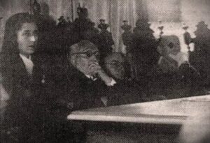 Con abrigo en el paraninfo junto a Carmen Polo